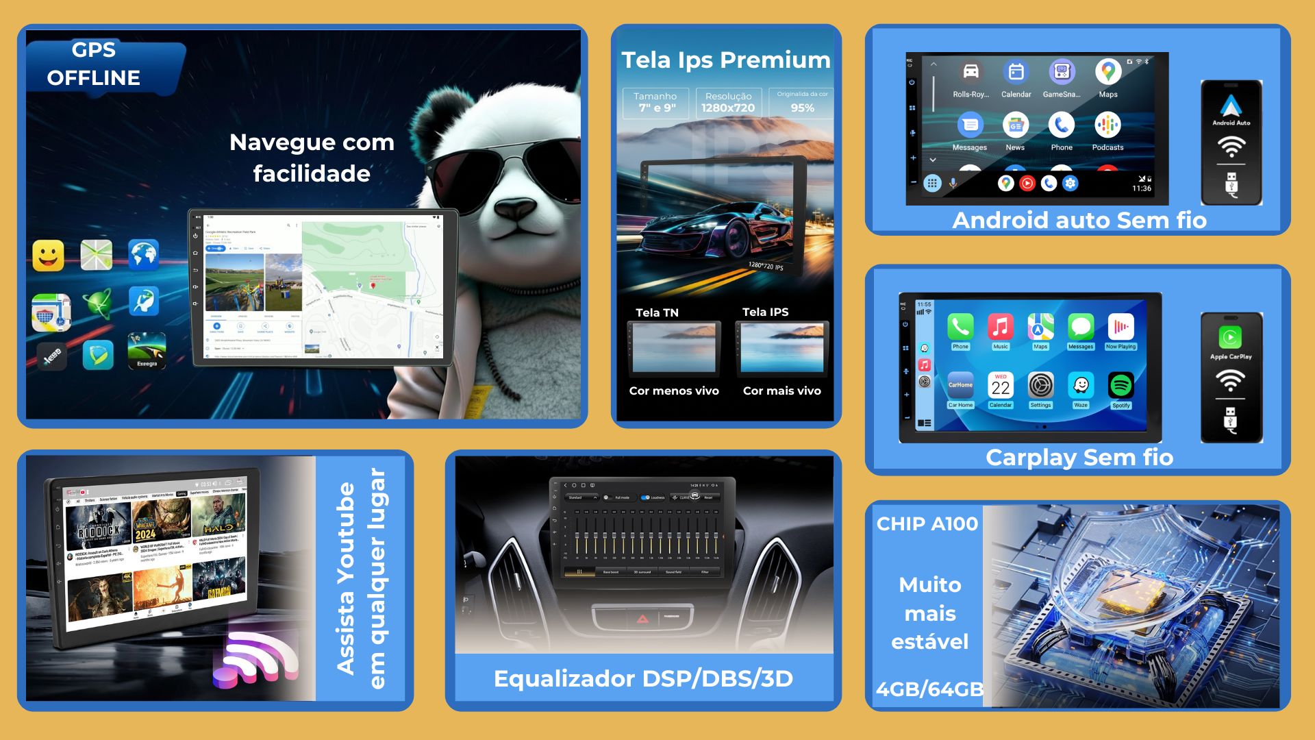 Multimídia 7" Android 4+64GB